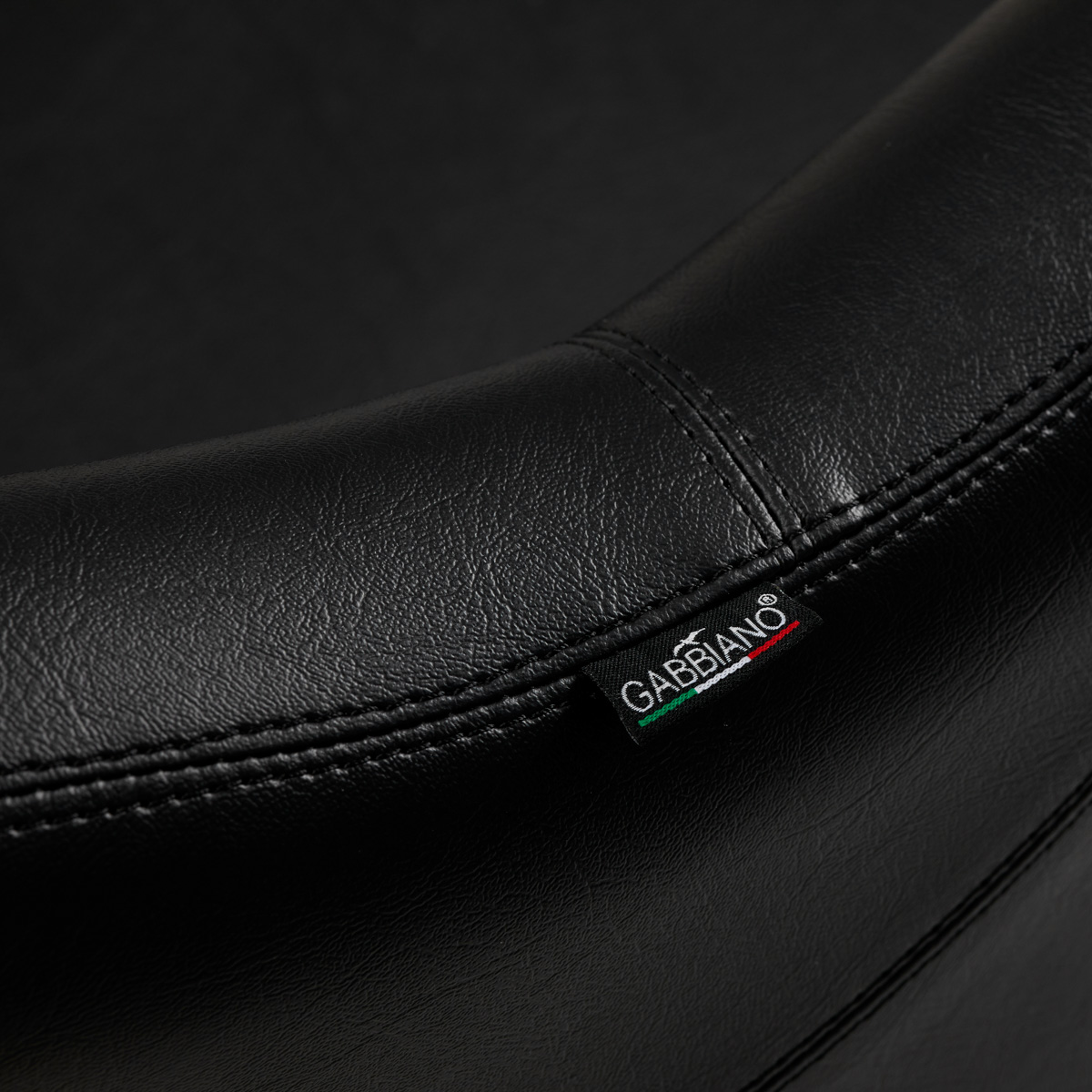 The chair is filled with foam, which is durable and does not deform, ensuring comfortable use for a long time. The upholstery is made of pleasant-to-the-touch imitation leather with a specific structure. Thanks to the use of such material, the equipment is resistant to moisture, durable and easy to clean. The covering in shades of black and decorative elements in gold hues give it an expression of timeless elegance. Its distinctive classic finish makes it look great in almost any space.