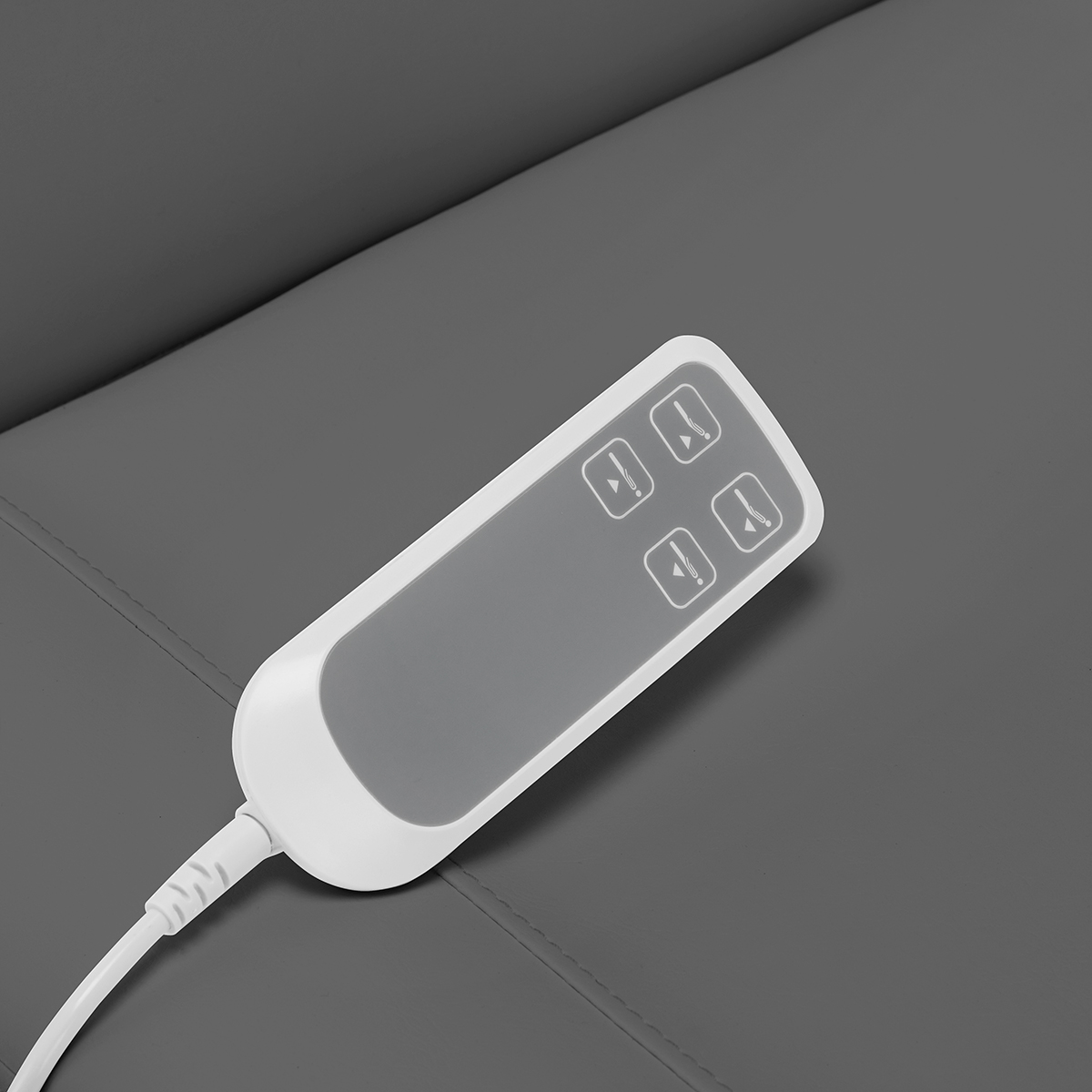 Using an easy-to-use remote control, the chair adjusts smoothly in 2 planes – it has height and backrest adjustment. The seat height can be adjusted from 61 cm to 84 cm, and when fully extended, the chair reaches a length of 2 m. These dimensions allow the equipment to be easily used by people of different heights and allow it to be adapted to the current treatment and individual needs, which affects both the comfort of the user and the person performing the service. The handles located on both sides of the seat allow you to hang the remote control so that it is always at hand.