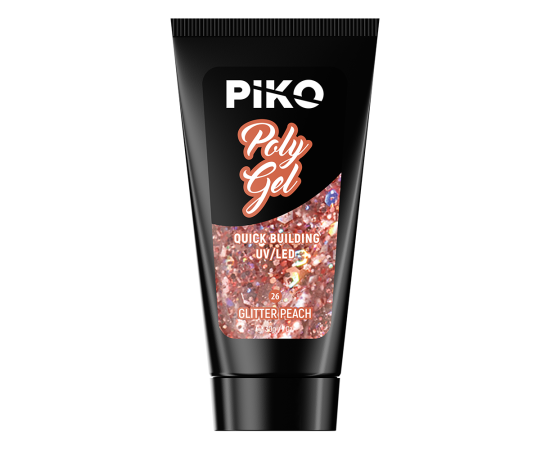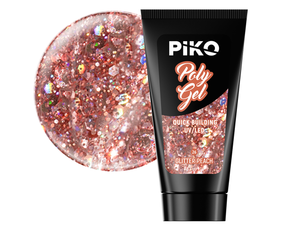 Gli appassionati di Polygel possono ordinare Polygel PIKO, 30 g 26 Glitter Peach a qualsiasi ora del giorno e della notte