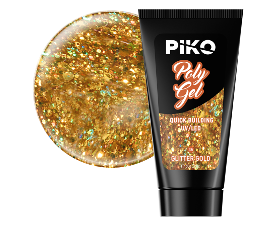 Gli appassionati di Polygel possono ordinare Polygel PIKO, 30 g 46 Glitter Gold a qualsiasi ora del giorno e della notte
