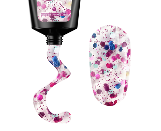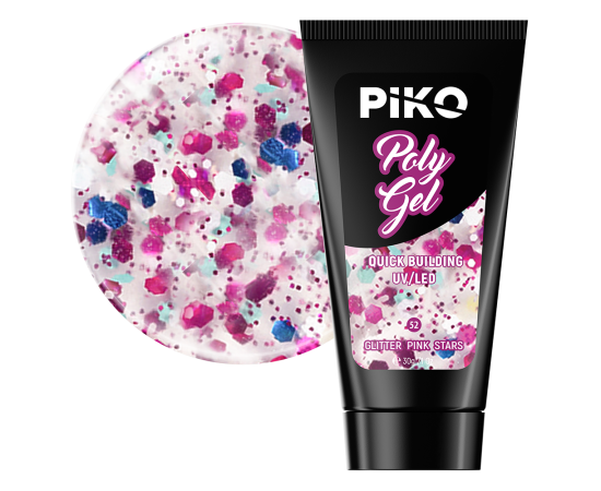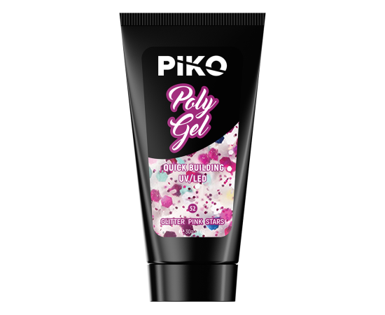 Polygel PIKO, 30 g 52 Glitter Pink Stars