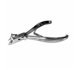 Front pliers designed for podiatric procedures. Made from the highest quality stainless steel. The specially shaped blade makes them ideal for shortening hard and thick nails. They have a built-in automatic safety lock to prevent accidental opening. The model is equipped with a two-spring...