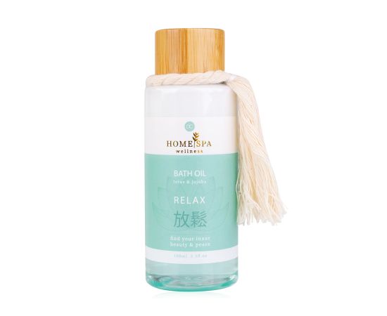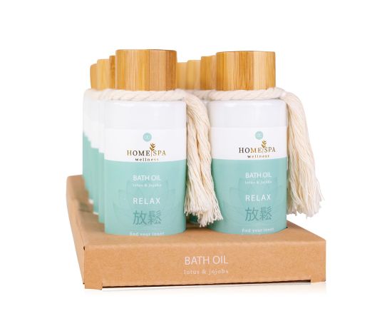 Regalo donna, olio doccia, 100ml bath oil HOME SPA with tassel, fragrance: Lotus & Jojoba, col. mint green/brown/white2 in display, regali di natale