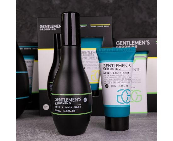 Regalo uomo, bagnoschiuma, balsamo dopobarba, Bath set GENTLEMEN'S GROOMING in paper gift box, 150ml hair & body wash, 60ml balsamo dopobarbabalm, fragrance: Cool Mint & Lime, col. black/white/mint, regali di natale