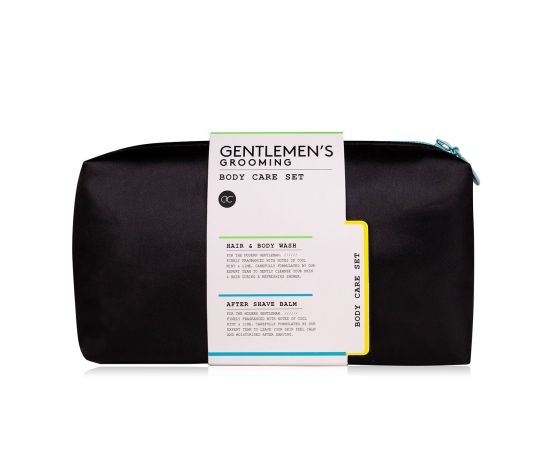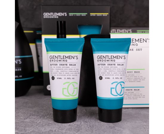 Regalo uomo, bagnoschiuma, balsamo dopobarba, Bath set GENTLEMEN'S GROOMING in wash bag, 60ml hair & body wash, 60ml balsamo dopobarbabalm, fragrance: Cool Mint & Lime, col. black/white/mint, regali di natale
