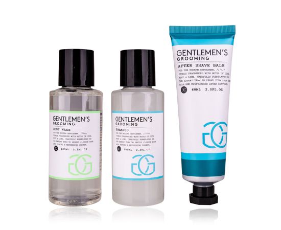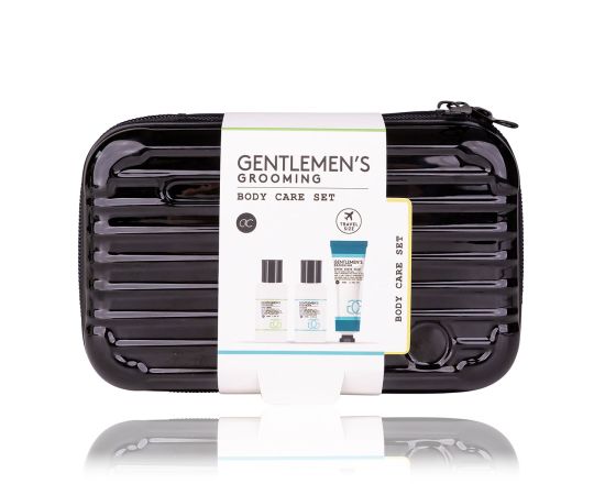 Regalo uomo, bagnoschiuma, shampoo, balsamo dopobarba, Travel set GENTLEMEN'S GROOMING in hard-shell case, 100ml body wash, 100ml shampoo, 60ml balsamo dopobarbabalm, fragrance: Cool Mint & Lime, col. black/white/mint, regali di natale