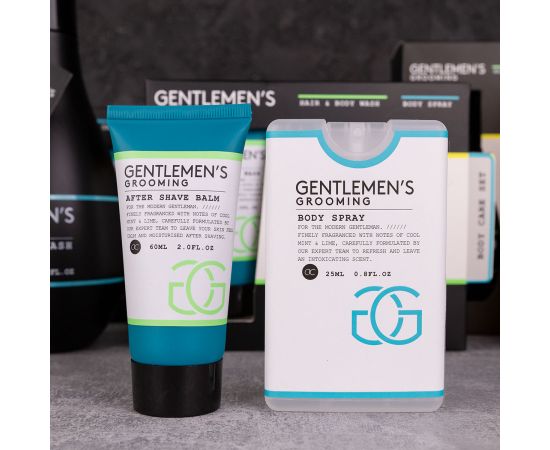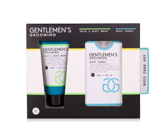 Regalo uomo, bagnoschiuma, spray per il corpo, Bath set GENTLEMEN'S GROOMING in paper gift box, 60ml hair & body wash, 25ml body spray, fragrance: Cool Mint & Lime, col. black/white/mint, regali di natale