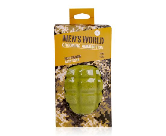Regalo uomo, bath bomb, 150g bath fizzer MEN'S WORLD in gift packaging, bomb shape, fragrance: Oak & Amber, col.: olive green/ochre/orange, regali di natale