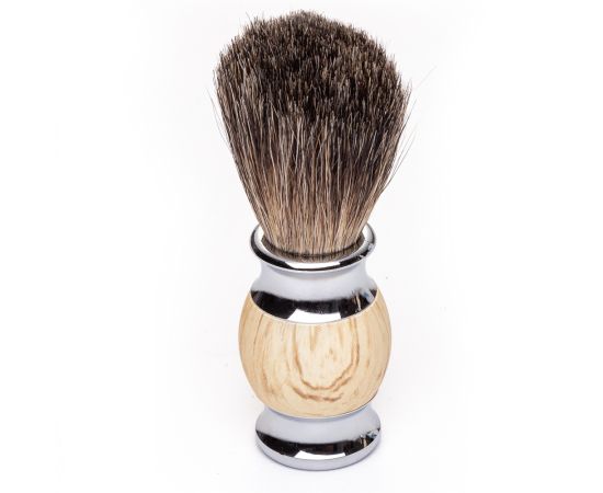 Il tappetino da barba è realizzato in metallo cromato e 100% pelo di tasso, che trasforma la classica rasatura in un piacere. Dimentica la pelle irritata!