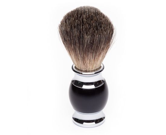 Il tappetino da barba è realizzato in metallo cromato e 100% pelo di tasso, che trasforma la classica rasatura in un piacere. Dimentica la pelle irritata!