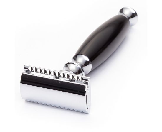 Il doppio rasoio è costruito con la stessa cura, realizzato in metallo cromato, ha un manico che ti dà il perfetto equilibrio e le lame la precisione che hai sempre desiderato.