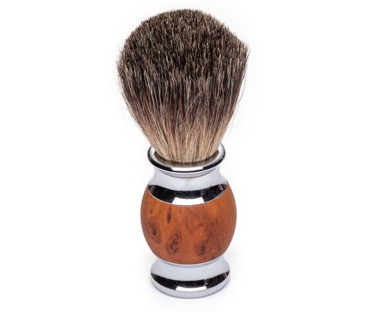 Il tappetino da barba è realizzato in metallo cromato e 100% pelo di tasso, che trasforma la classica rasatura in un piacere. Dimentica la pelle irritata!