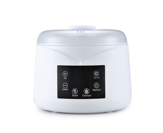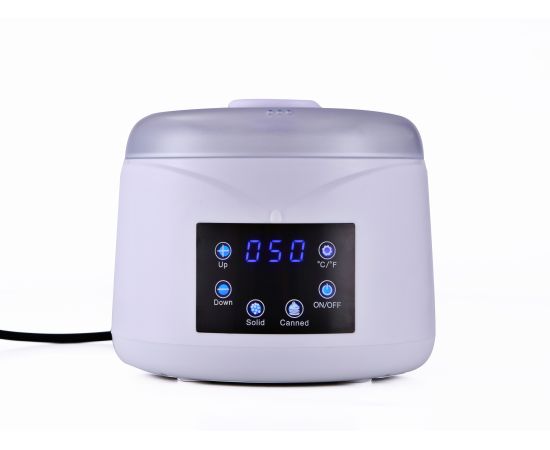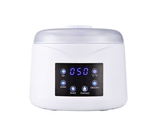 Il riscaldatore ha una potenza di 100 W, può contenere 500 ml di cera ed è dotato di controllo manuale della temperatura.