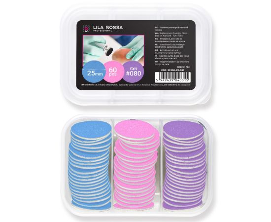 Sul sito del negozio online Lila Care, presente sul mercato dal 2009, puoi trovare Set di 60 ricambi per talloni #080 per Fresa elettrica per talloni, lima per piedi con disco da 25 mm al prezzo di 3.49 EUR. Che tu sia di Roma o di un'altra parte del paese, non esitare a ordinare i prodotti per manicure Lila Rossa di Lila Care!