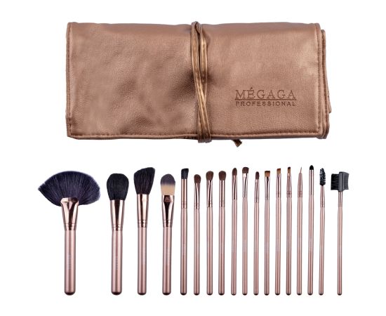 Set pennelli trucco 18 , capelli naturali, MEGAGA