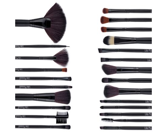 Il set di pennelli viene fornito in una custodia che consente di riporli facilmente. I 24 pennelli sono destinati sia ai professionisti che agli appassionati di trucco.