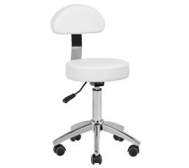 cosmetic stool am-304 white 1 pc comfortable cosmetic stool, stable on a five-star base, with rubberized wheels, with the possibility of disassembling the backrest, white, a necessary piece of furniture in a beauty salon. dimensions: - seat dimensions, diameter 32 cm - height min....