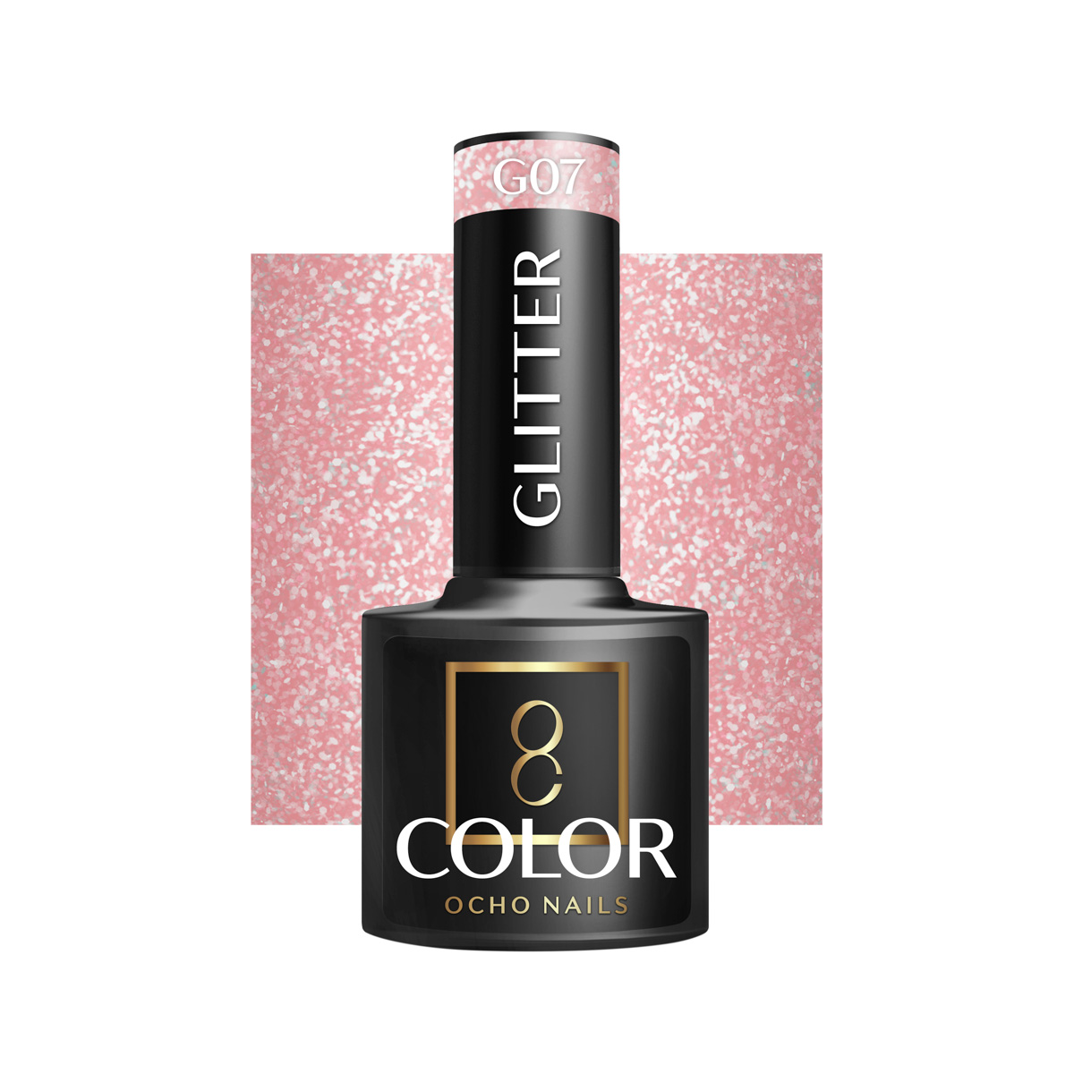 A little bit of glitter is able to add tremendous variety to the appearance of nails. Nail polishes with smaller or larger particles can change the appearance of the hands, giving them an interesting shine. The OCHO NAILS GLITTER collection allows you to create both a formal, extravagant styling, as well as add a little extraordinary to your everyday manicure. The availability of a various colors will allow you to give each styling a unique character. Fancy, full of glitter nail design will give your hands a remarkable look.