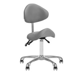 Cosmetic stool model 1004, profiled. Comfortable, exclusive, stable cosmetic stool with a backrest and a profiled seat, on a five-star, very stable base. Adjustable in three planes: - full seat angle adjustment - full height adjustment of the backrest - up and down adjustment