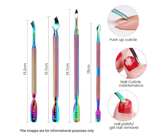 - utilizzare l'estremità arrotondata per spingere la cuticola e l'estremità appuntita per rimuovere la cuticola