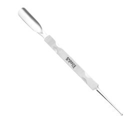 Double-sided manicure hoof. both sides of the hoof are finished with a semicircular spoon of various widths - ideal for removing cuticles. silver, grooved spindle facilitates work. suitable for disinfection.