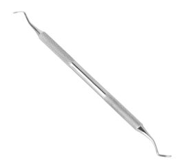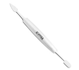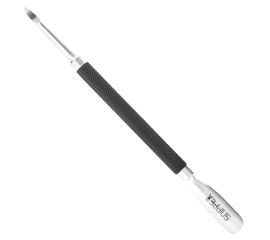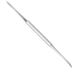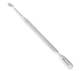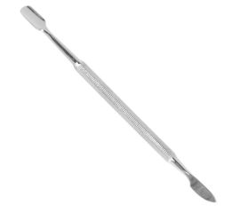 Double-sided manicure hoof. both sides of the hoof are finished with a semicircular spoon of various widths - ideal for removing cuticles. silver, grooved spindle facilitates work. suitable for disinfection.