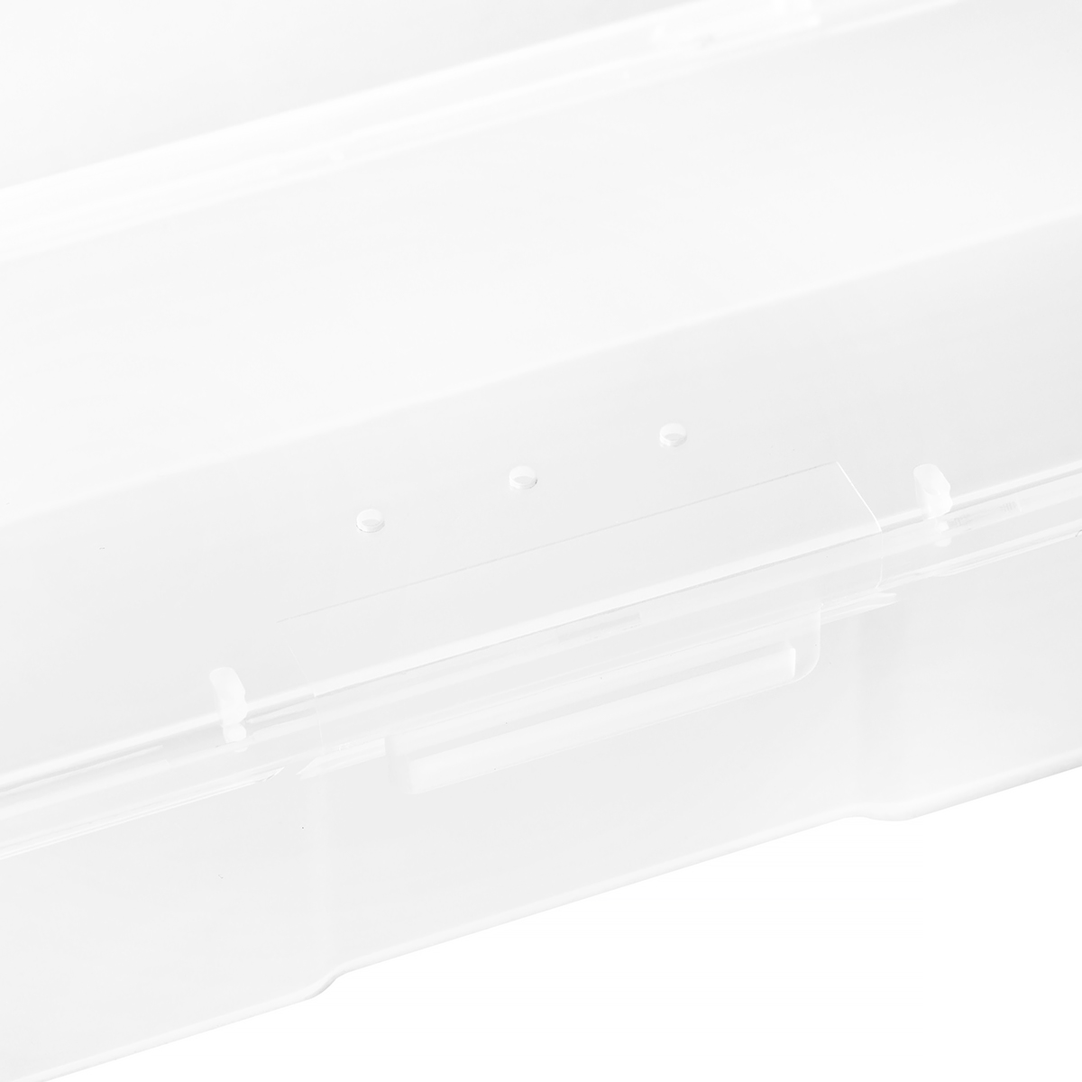 The practical container is made of plastic, making it durable and easy to clean. It allows you to maintain hygiene and order in the stored accessories. Openings in the lid allow air to flow in so as not to keep moisture inside.