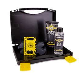 Regalo uomo, bagnoschiuma, scrub, sapone, spazzola, Bath set BATH & BODY TOOLS in tool box, 100ml hair & body wash, 100ml hand scrub for dirty hands, 120g wrench soap, multi tool, fragrance: Musk, col.: black/yellow/grey, regali di natale