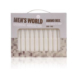 Regalo uomo, sapone, 200g soap MEN'S WORLD in paper box, ammunition shape, fragrance: Oak & Amber, col.: cream/brown/grey, regali di natale