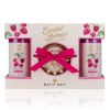 Regalo donna, bagnoschiuma, sale da bagno, spazzola, Bath set BLOSSOM in gift box, 100ml shower gel, 100g bath salt, nail brush, fragrance: Hibiscus & Coconut, col. white/light pink/yellow, regali di natale