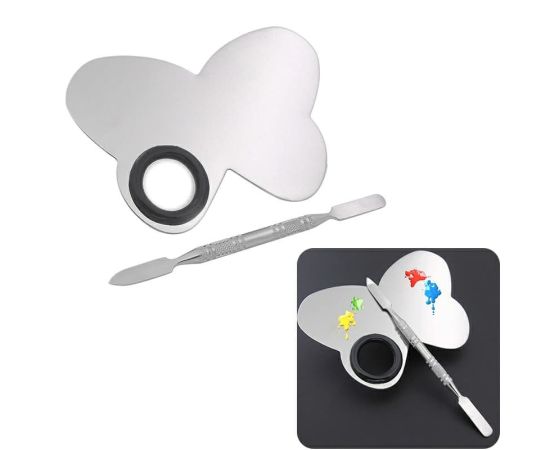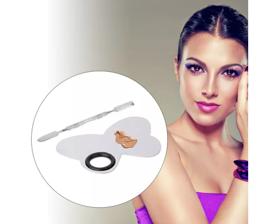 La palette a farfalla è ideale per miscelare fondotinta, correttori, rossetti, pigmenti o ombretti liquidi o cremosi, ma può essere utilizzata anche per miscelare gel, colori acrilici