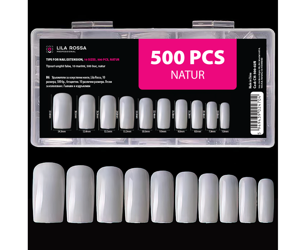 La qualità è l'elemento più importante che apprezziamo. Pertanto, il prodotto Tip unghie 500 pz Lila Rossa Natural viene fabbricato e conservato secondo standard elevati. È perfetto per la TUA manicure!