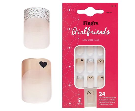 Tip unghie colore press-on, Girlfriends Decorated Nails, Passion, Fingrs, 24 pezzi