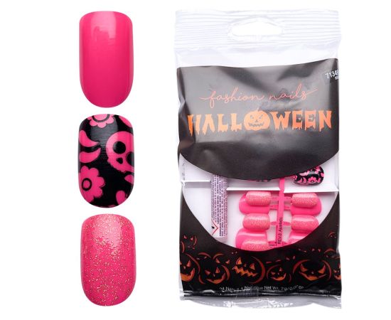 Gli appassionati di Tip unghie possono ordinare Tip unghie colore press-on, Halloween Glitter pink, 24 pezzi + colla per tip a qualsiasi ora del giorno e della notte