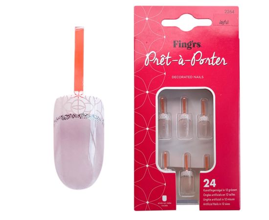 Tip unghie colore press-on, Pret-a-Porter, Decorated Nails, Joyful, Fingrs, 24 pezzi + bastoncino d’arancia