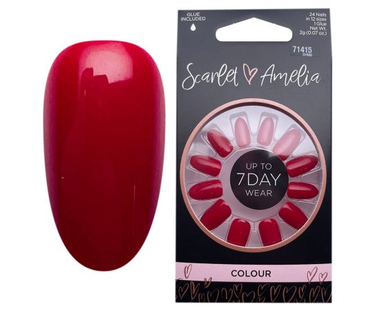 Tip unghie colore press-on, Scarlet & Amelia Date Night Red, 24 pezzi + colla per tip