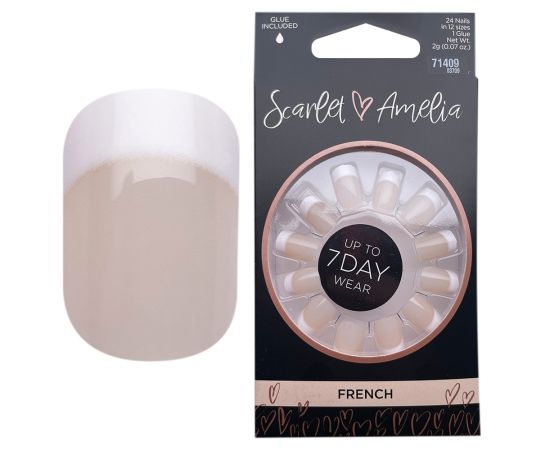 Tip unghie colore press-on, Scarlet & Amelia French 24 pezzi + colla per tip
